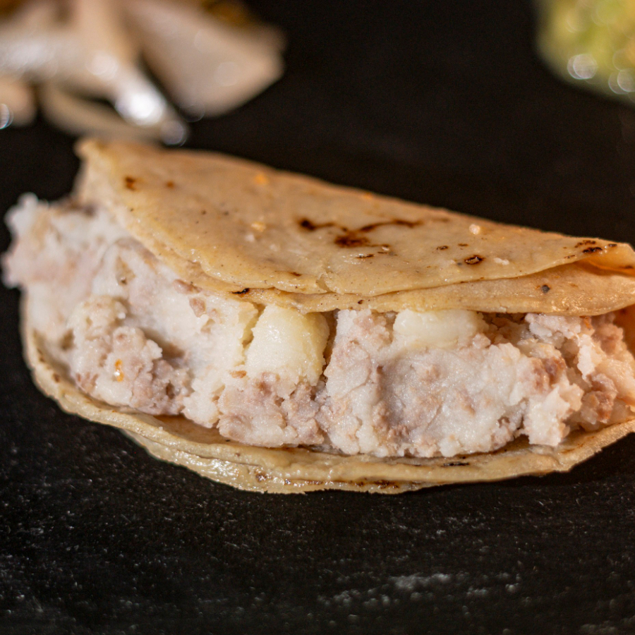 Tortilla de maíz con (guisado).