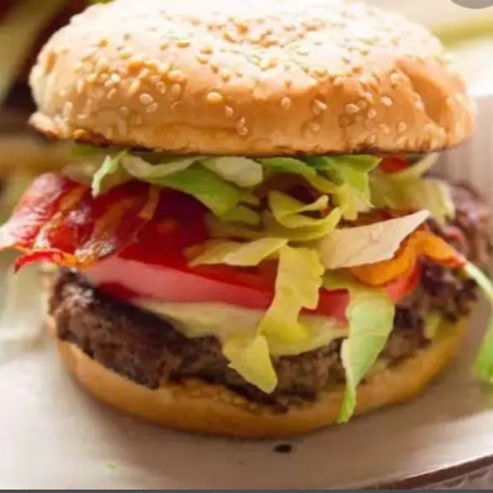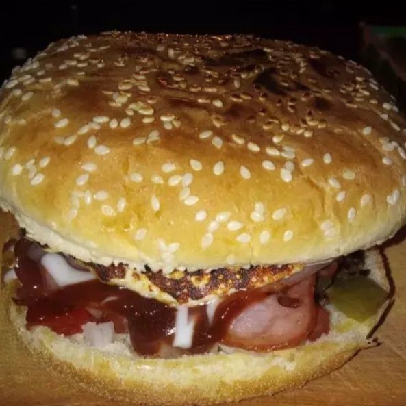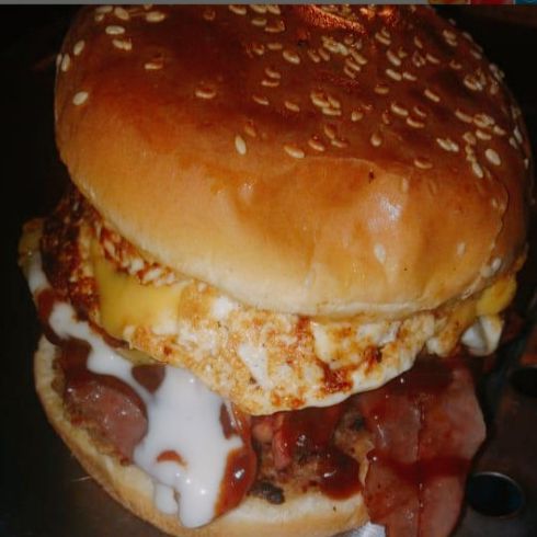 Carne de res, lechuga tomate cebolla frita, picante, jamón, queso amarillo, tocino, BBQ, y aderezo