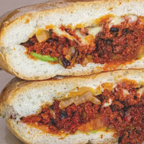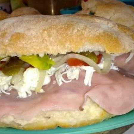 Carne de res, queso amarillo, jamón, queso manchego, salchicha de pavo, picante, lechuga, tomate, cebolla frita, catsup, mayonesa y mostaza.