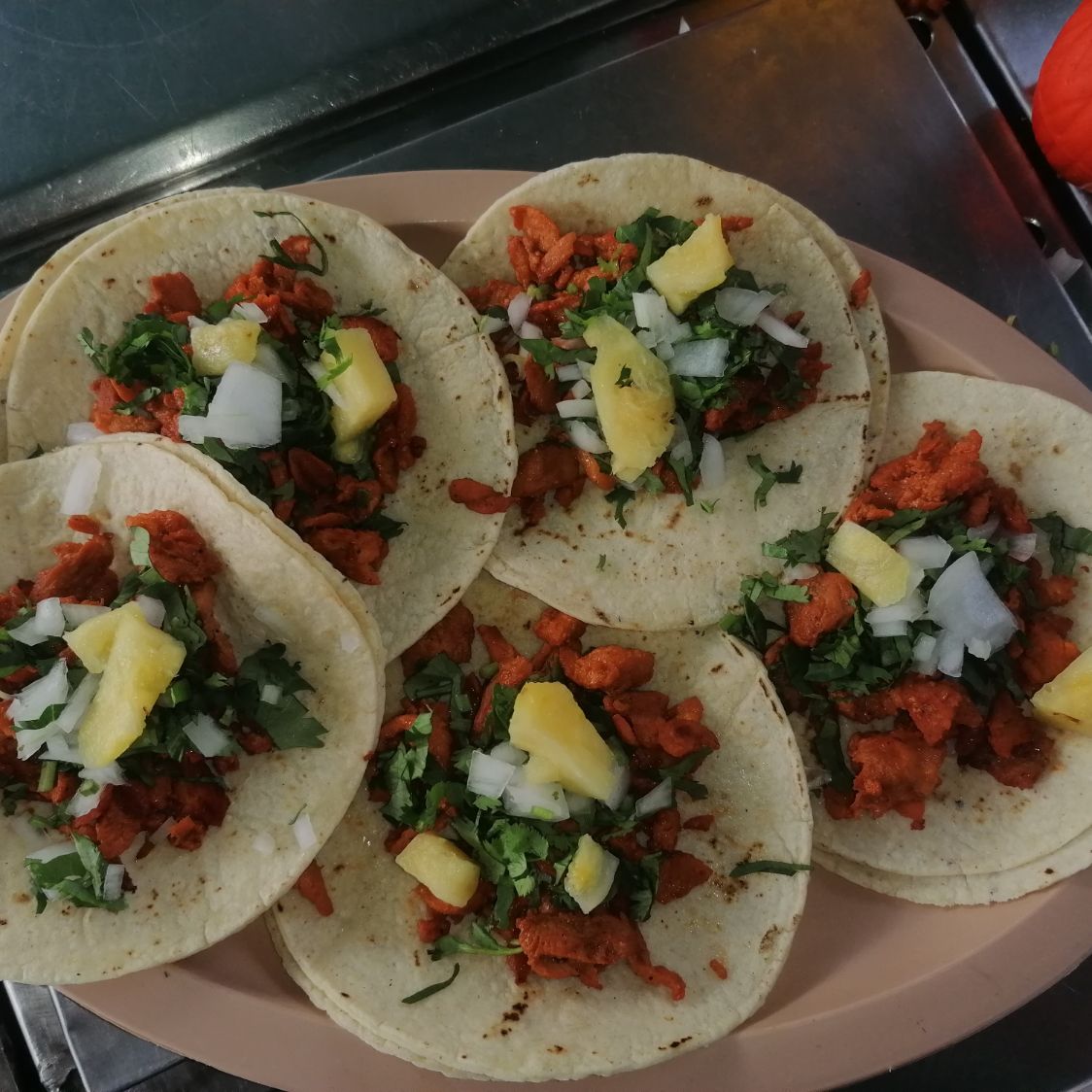 5 tacos doble tortilla de maíz, cebolla, cilantro y piña
