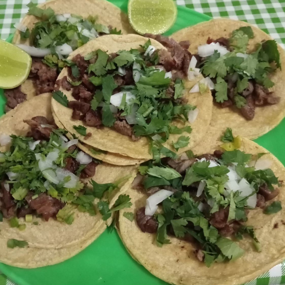 5 tacos con doble tortilla de maíz, cebolla, cilantro