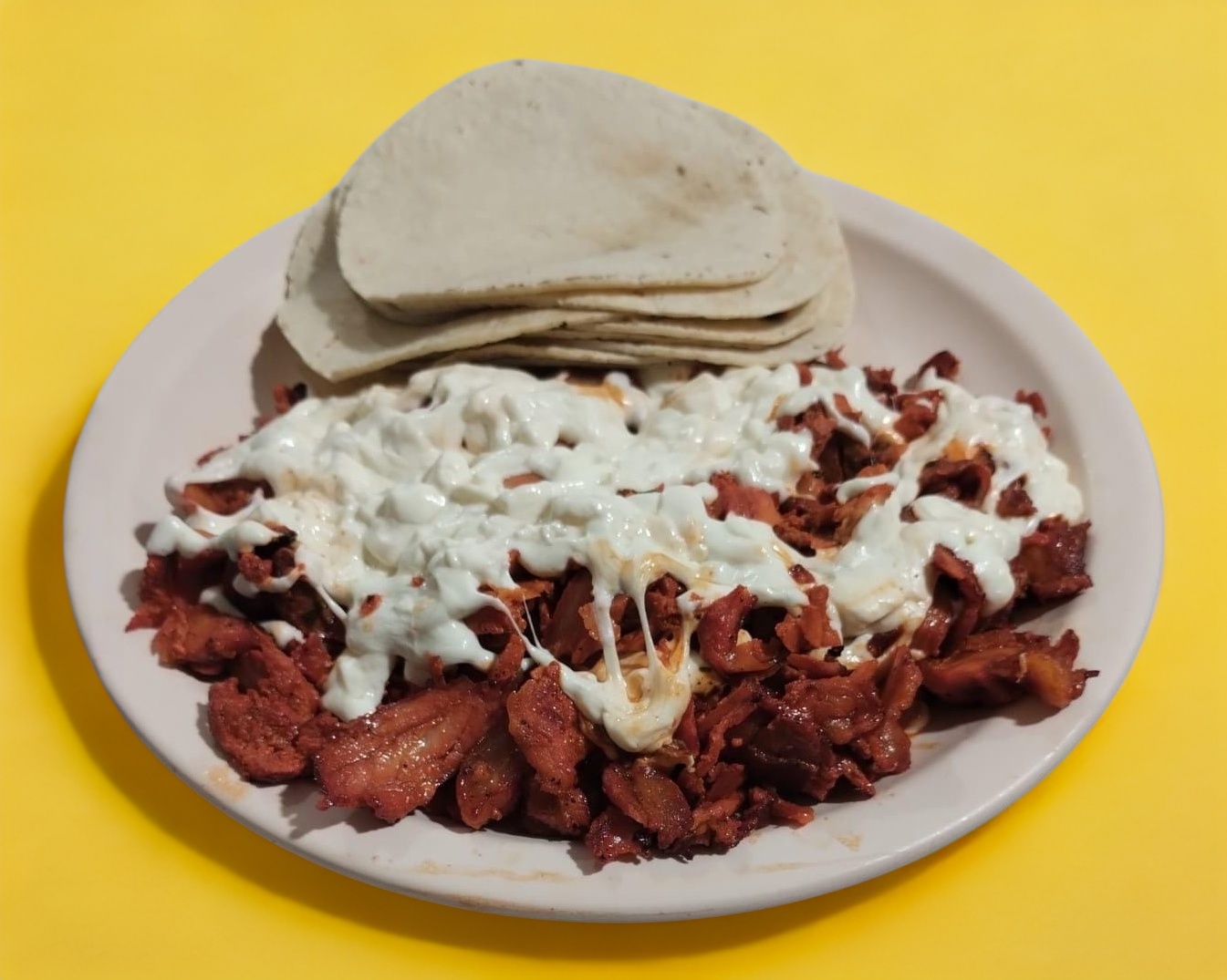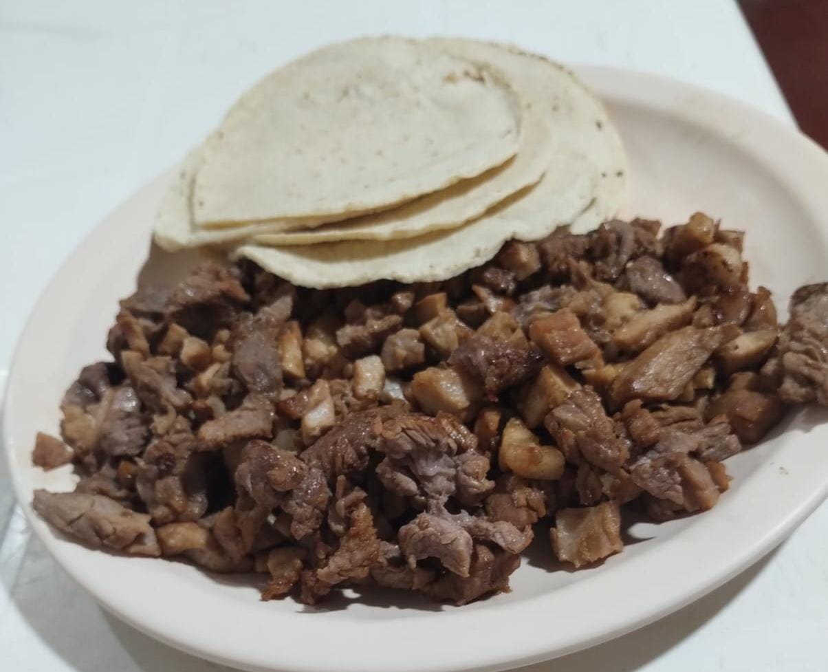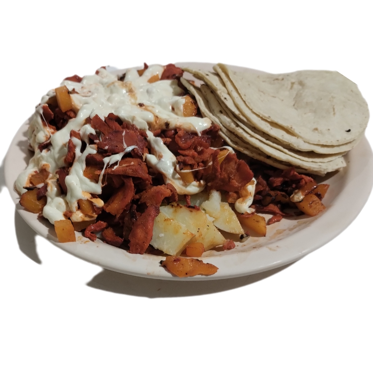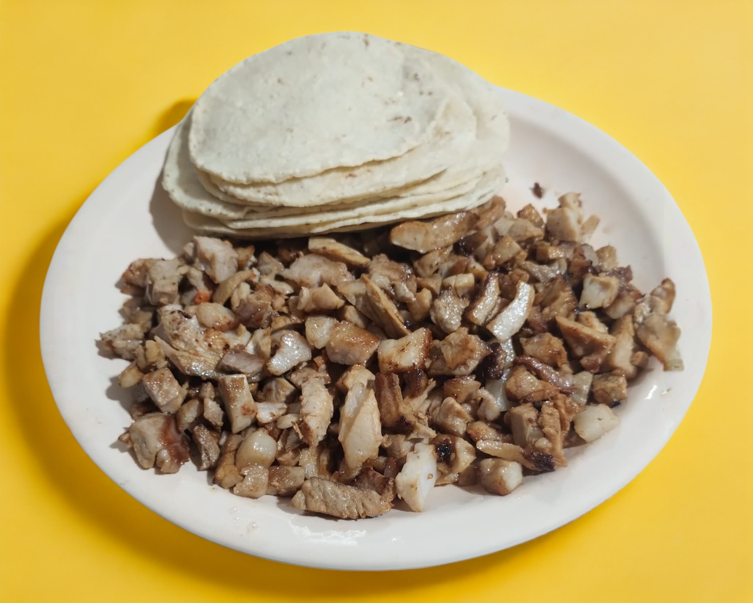Porción de carne al pastor, servida con tortilla aparte.