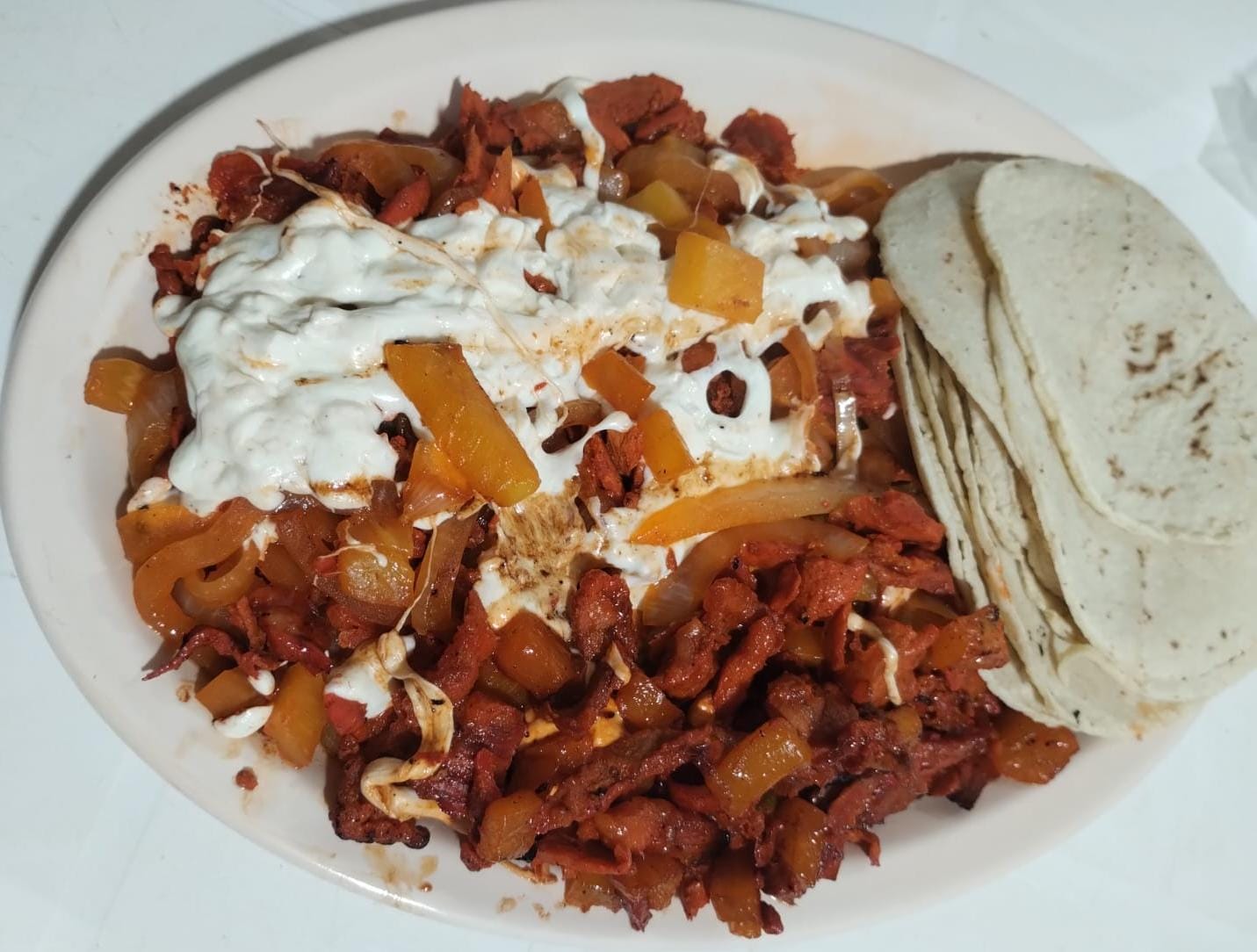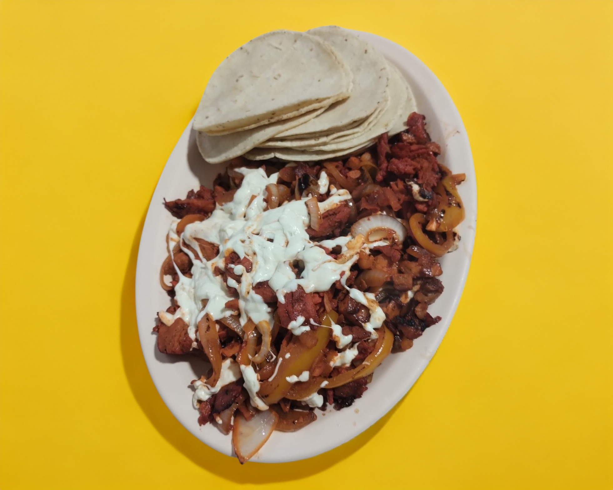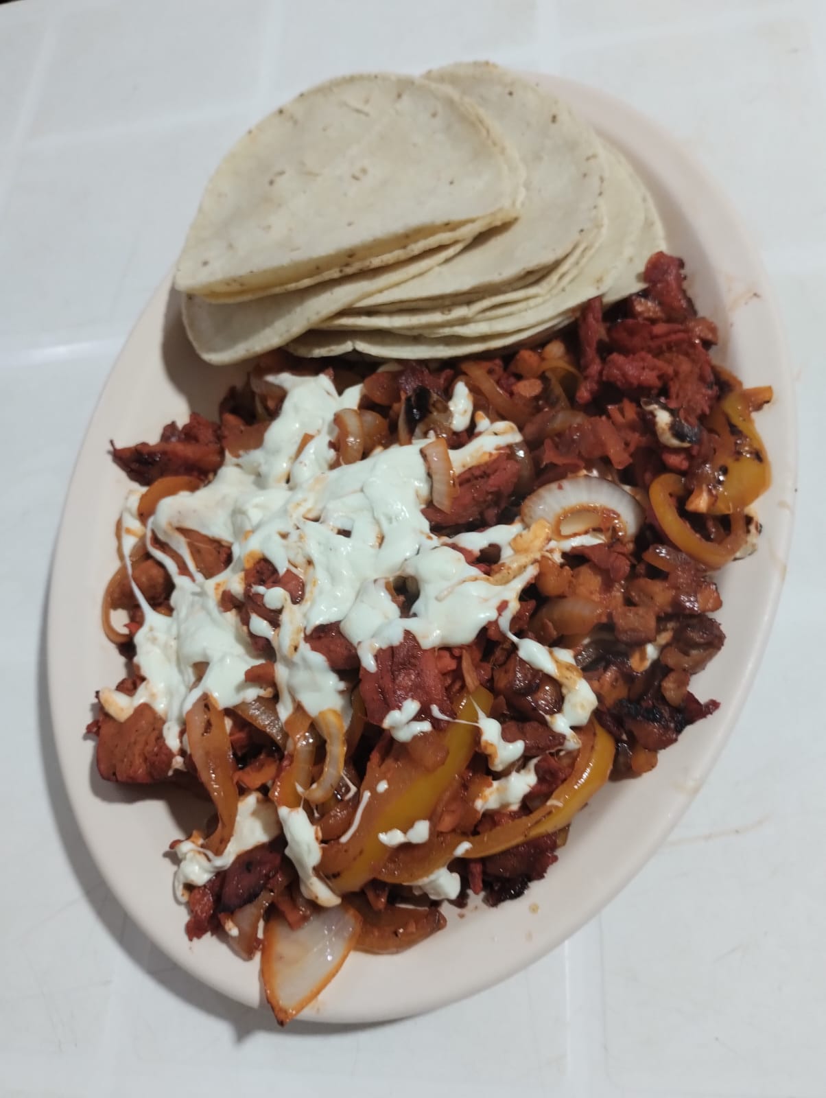 Porción de carne al pastor, servida con tortilla aparte.