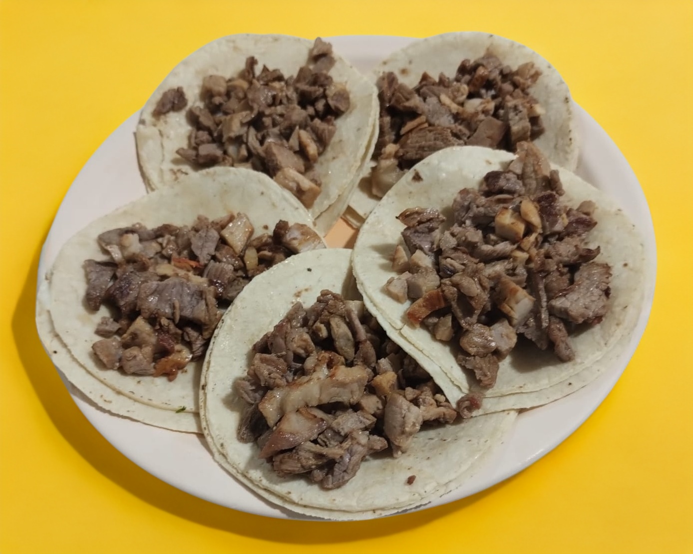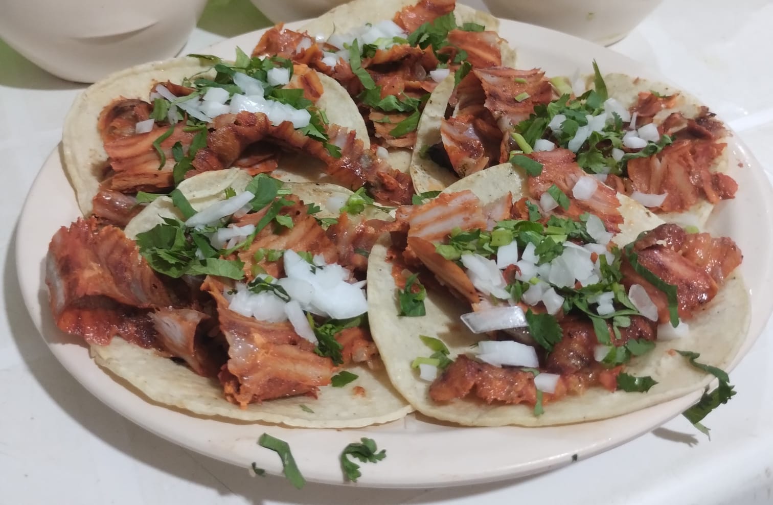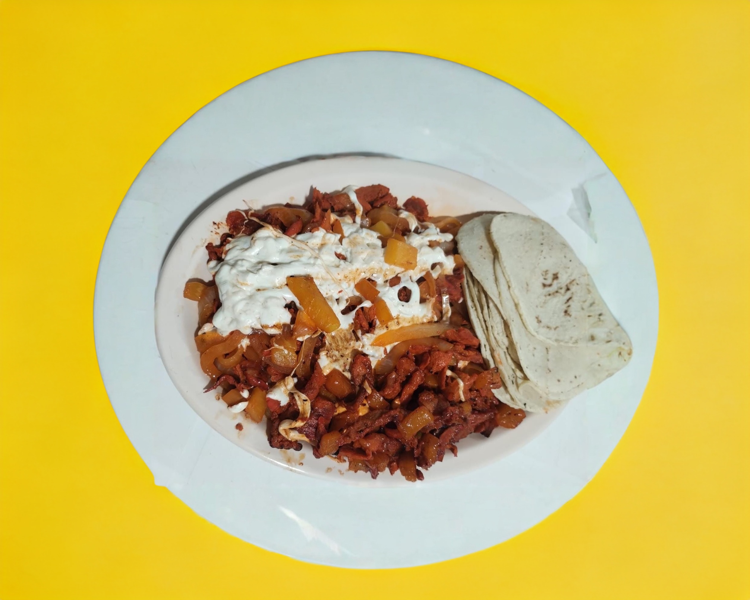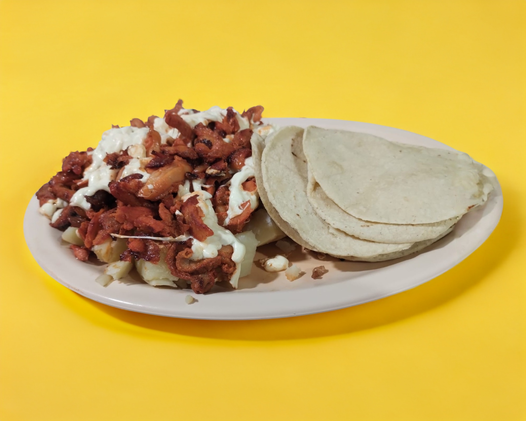 Porción de carne al pastor, servida con tortilla aparte.