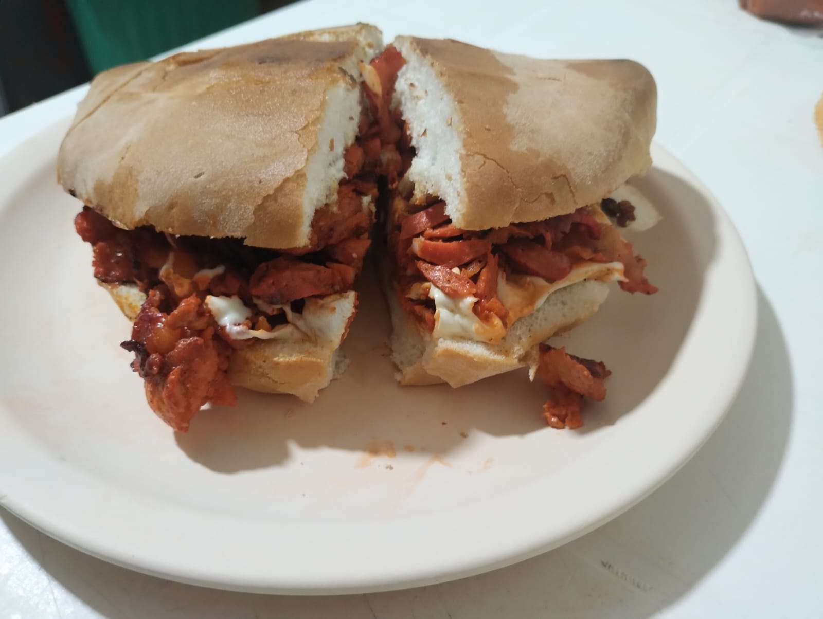 Torta con pastor, milanesa, aguacate, tomate y quesillo.
