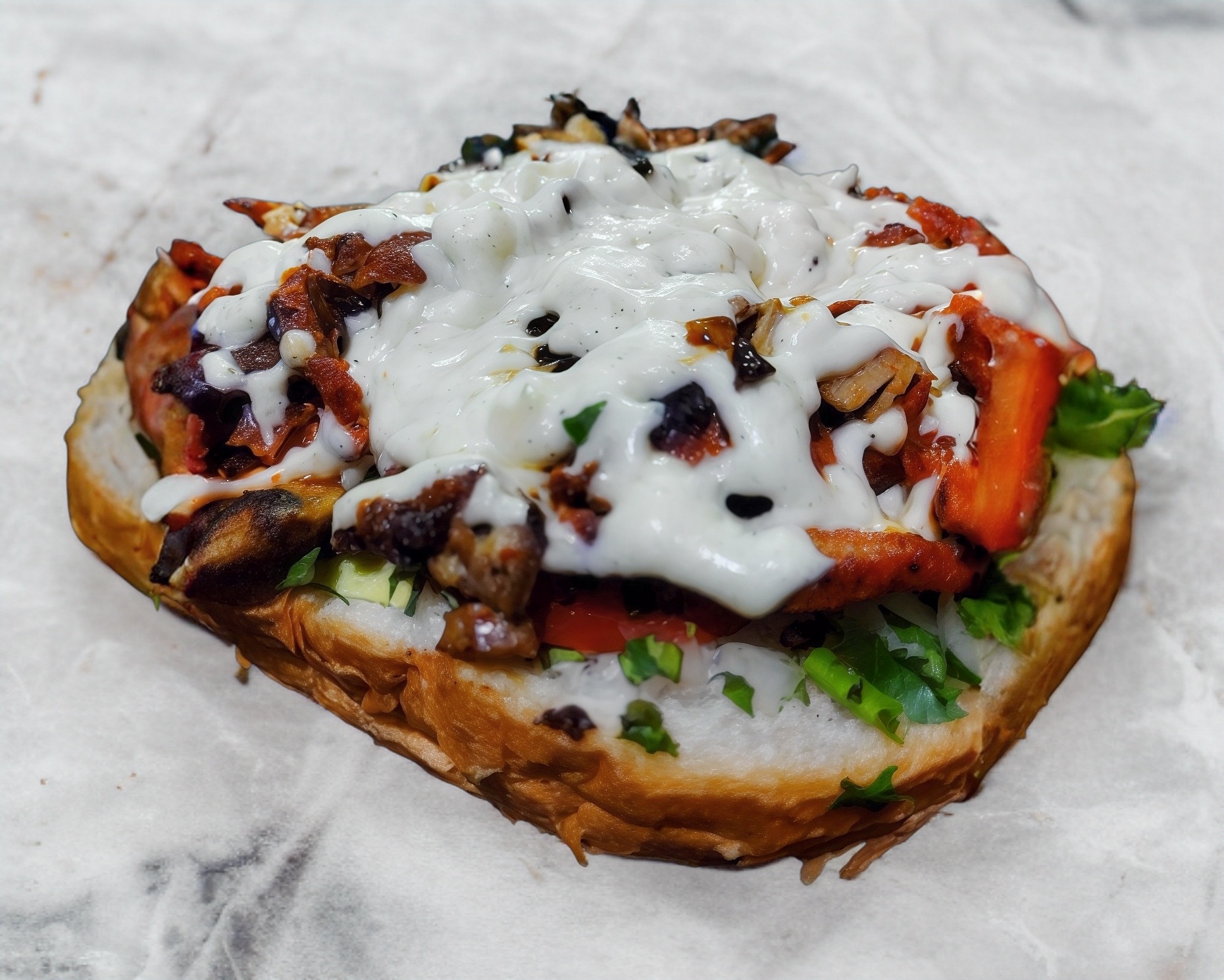 Pastor, bistec, champiñones, longaniza, aguacate, poblano y queso fundido.