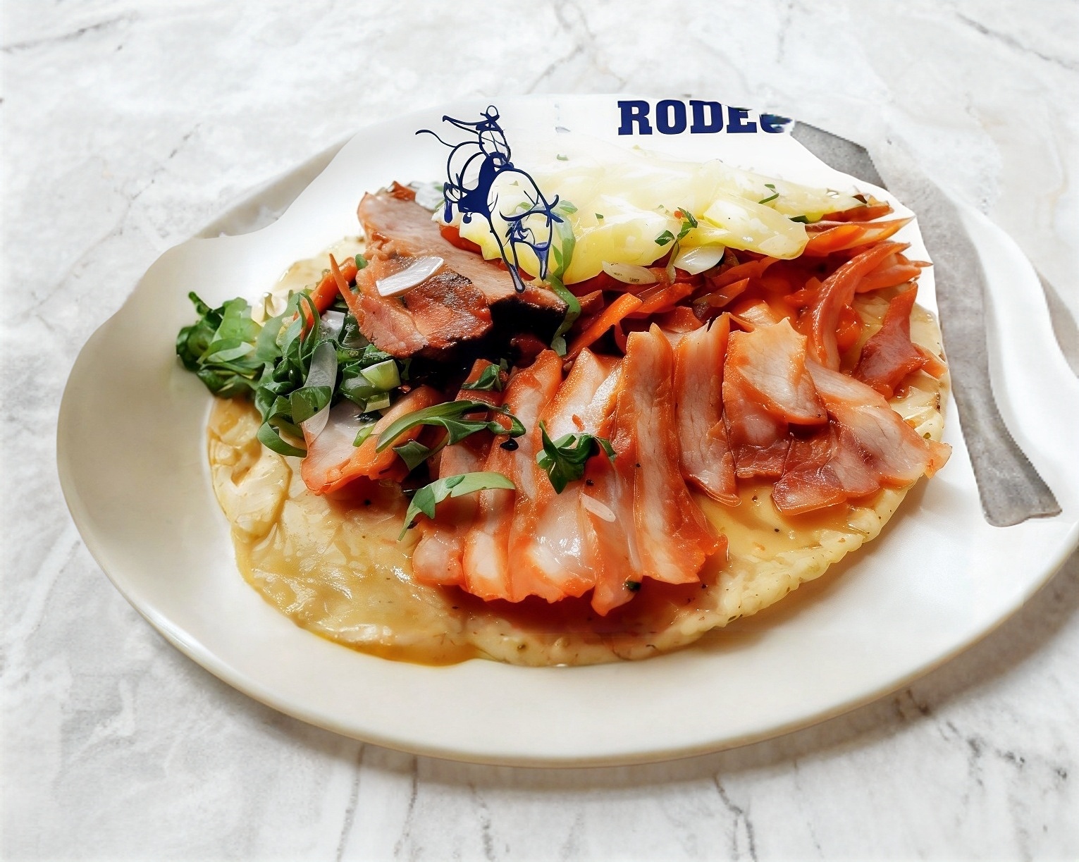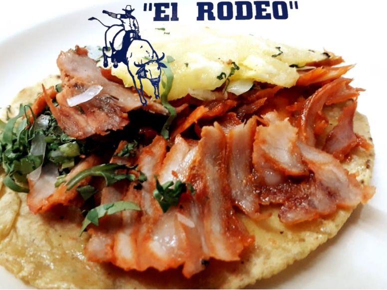 Pimiento, cebolla, pastor, quesillo. Acompañado de tortillas.