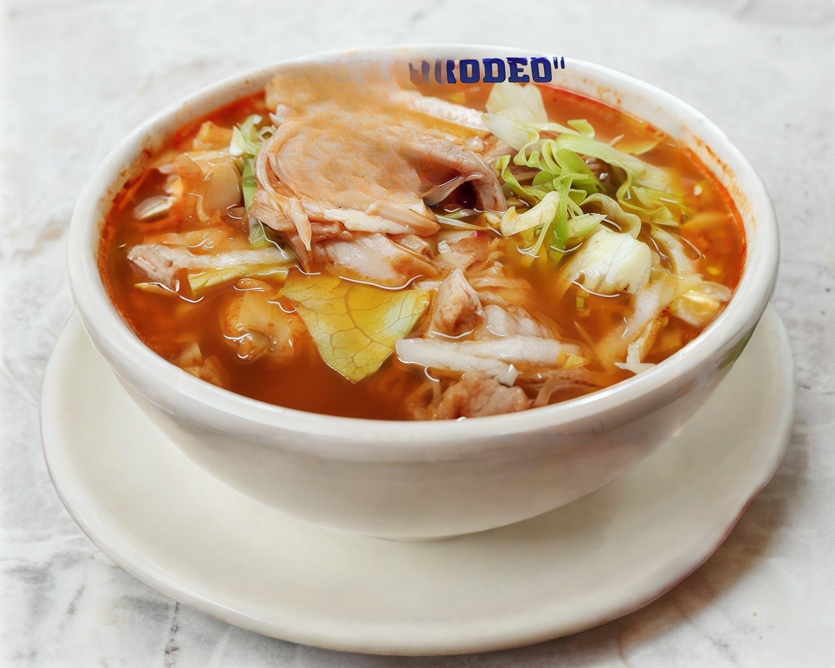 Maíz, orégano, pierna de puerco, acompañado de 2 tostadas.