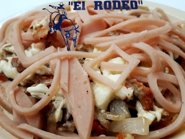 Cebolla, pastor, bistec, jamón, quesillo. Acompañado de tortillas.
