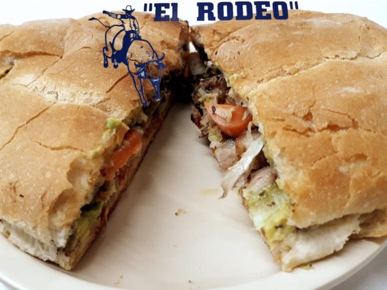 Telera, mayonesa, frijol, lechuga, tomate, aguacate, quesillo, jamón, chorizo, queso amarillo, pastor y pierna de cerdo.