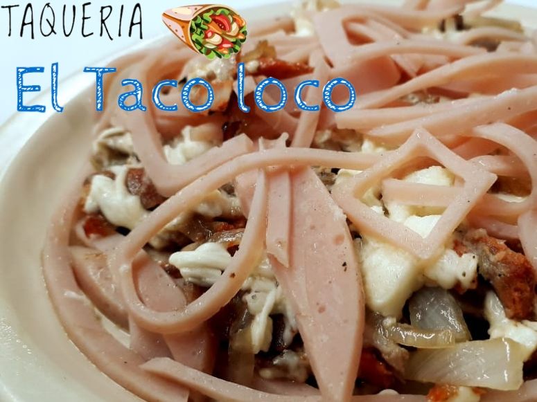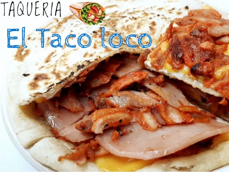 2 tortillas de harinas, quesillo, jamón, queso amarillo y carne al pastor.