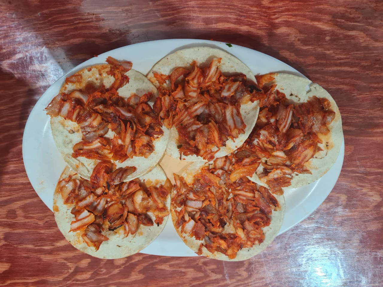 Al pastor, chuleta, jamón, tocino, cebolla y quesillo.