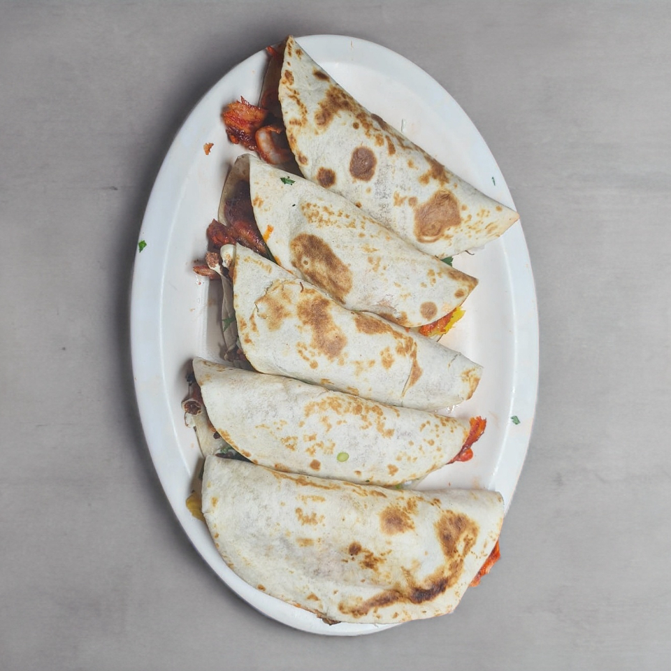 Tortilla de harina, quesillo, pina y carne de cerdo. Precio unitario