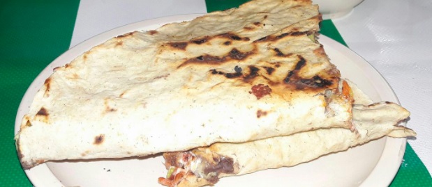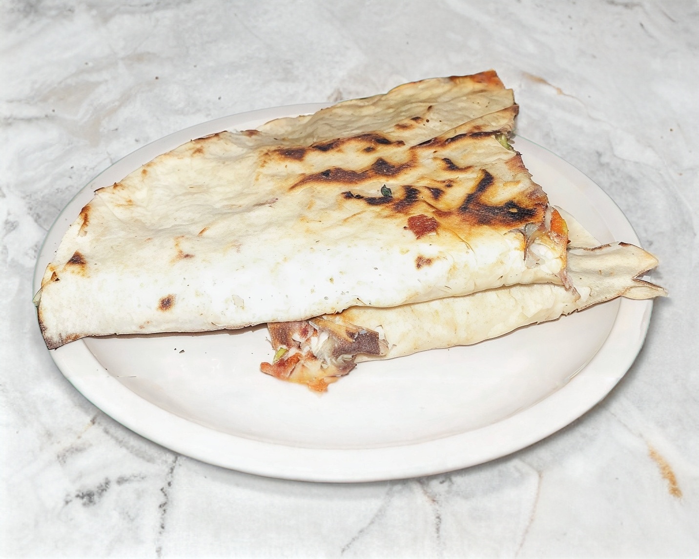 Dos tortillas de harina,pastor, quesos amarillo, jamon,quesillo