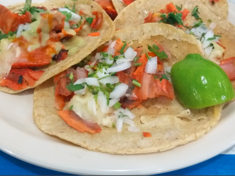 Salsa mexicana con pastor, quesillo, jamón y tocino.