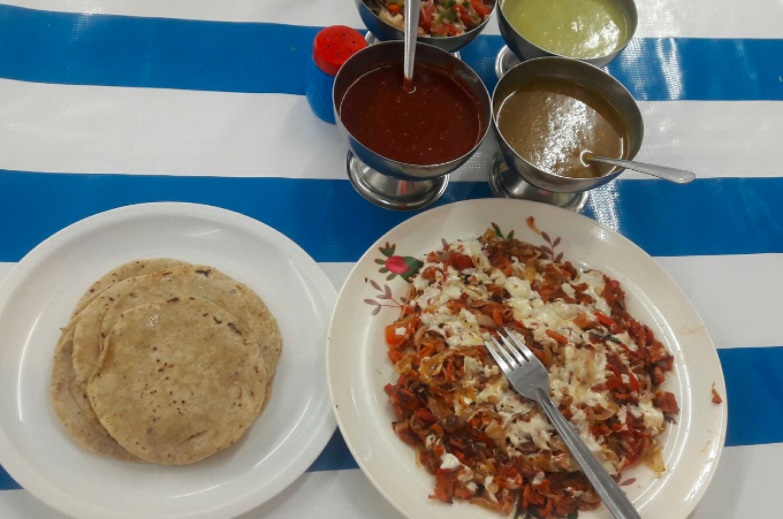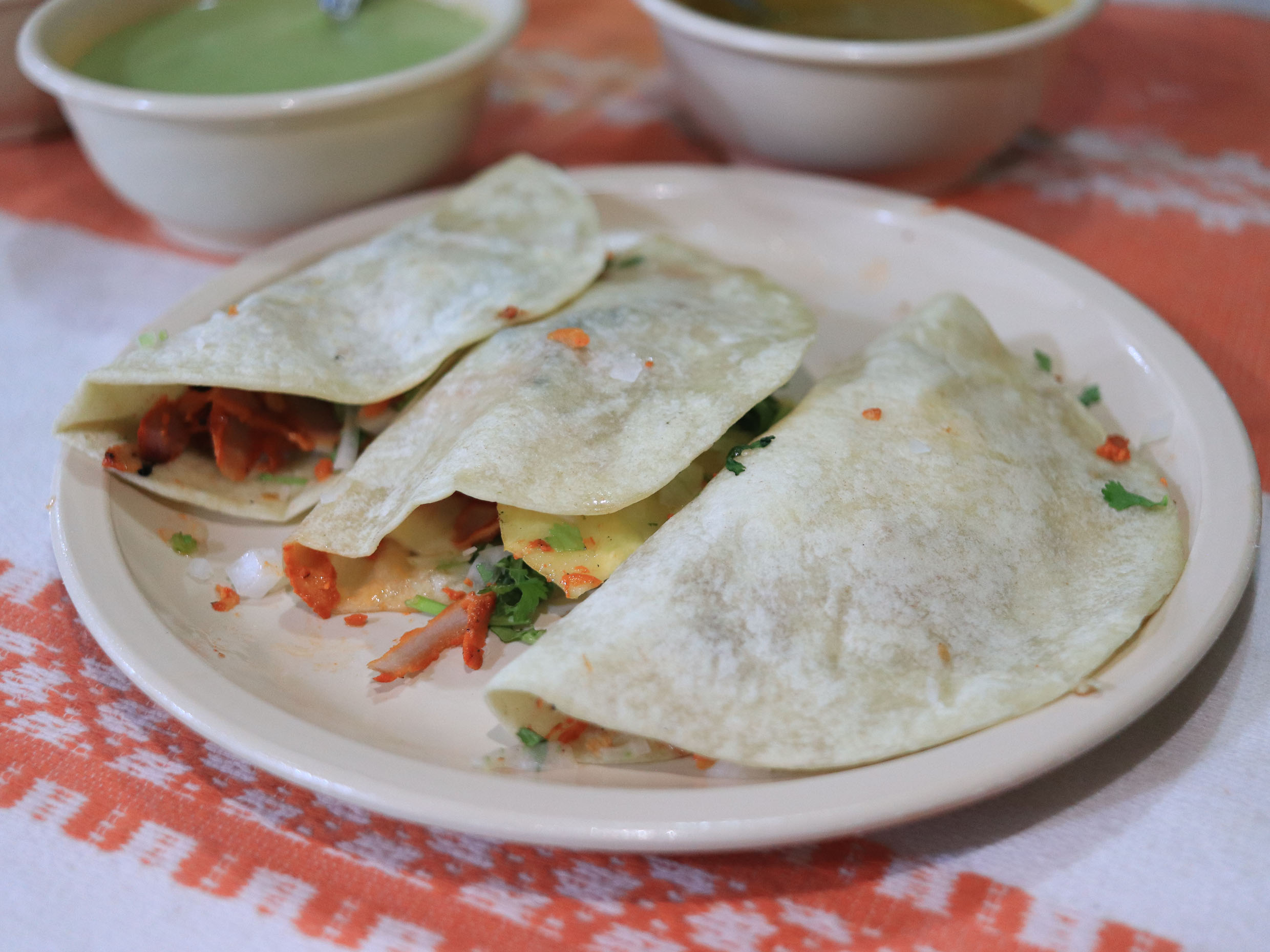 15 Tortillas, carne al pastor, cebolla, morrón, tocino, y quesillo. Plato personal