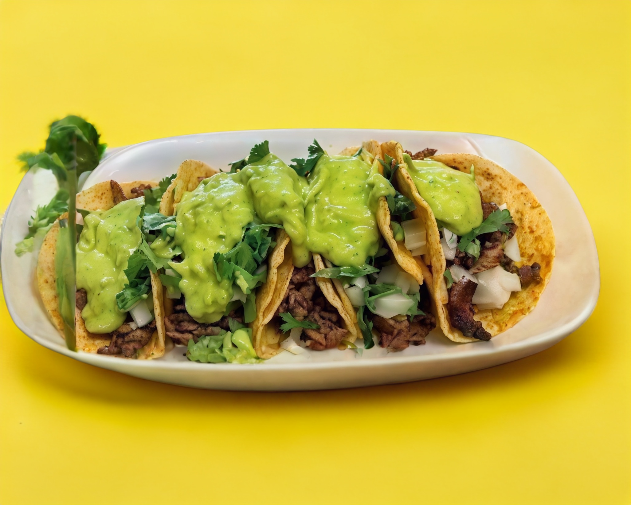 5 unidades taco al Pastor cebolla, cilantro, salsa roja o verde. Plato personal