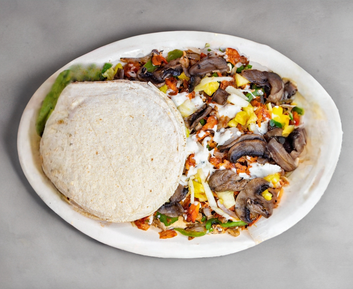 Carne de al pastor,cebolla , aguacate,tomate y quesillo