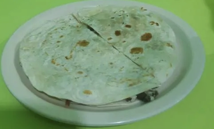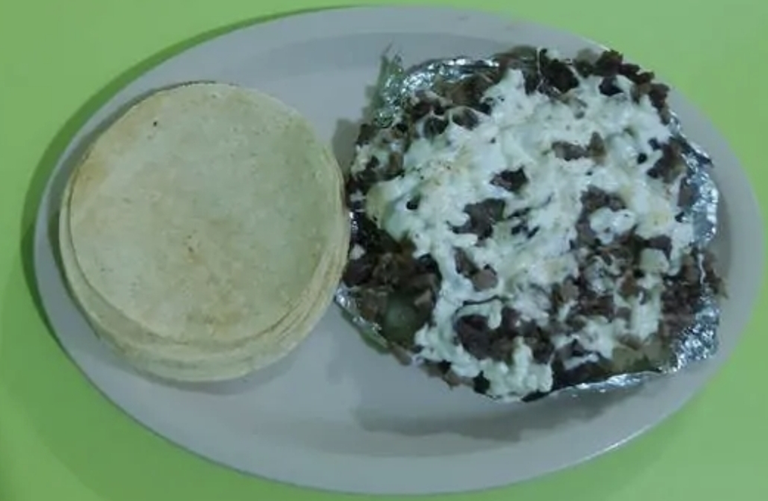 doble tortilla de arina, carne y quesillo