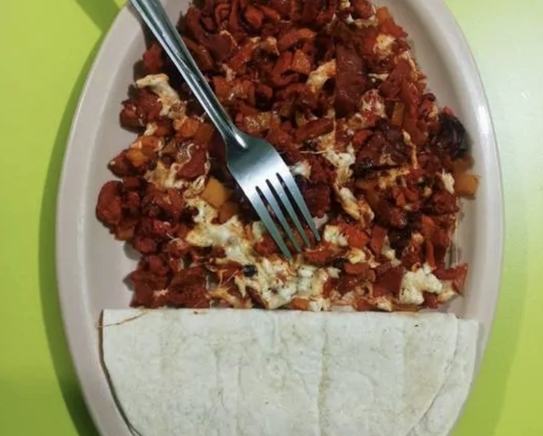 doble tortilla de arina, carne, piña y quesillo