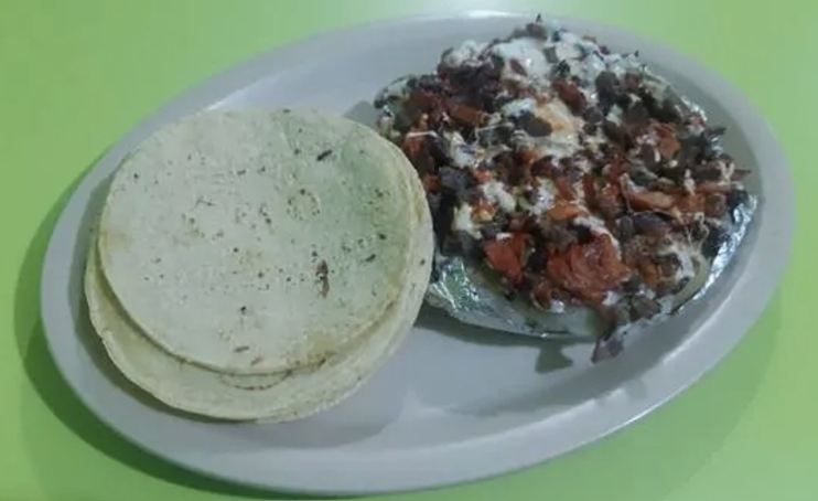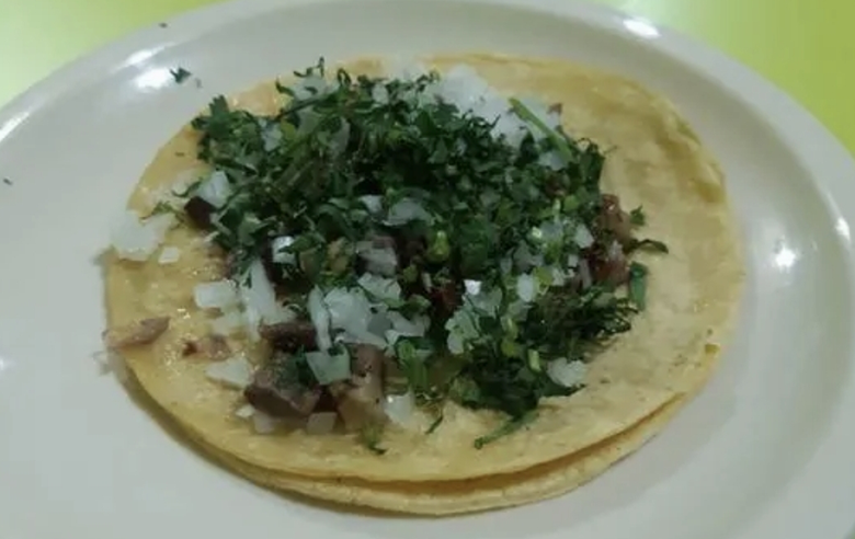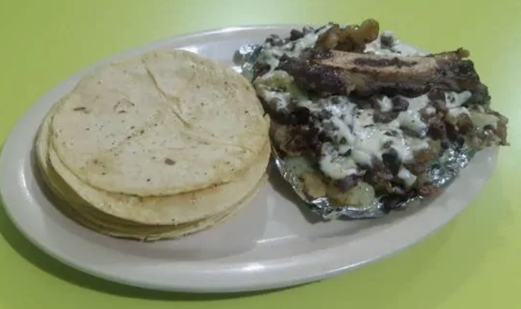 Bistec, pastor, chuleta, tocino, morrón, cebolla, aguacate, quesillo con tortillas de maiz