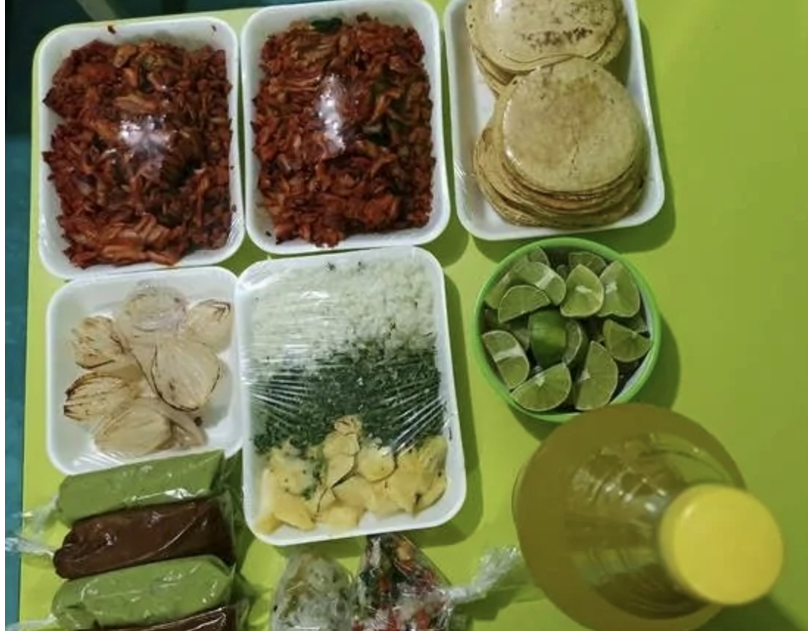 Incluye: salsa, guacamole, cilantro, cebolla, piña, limones y tortillas