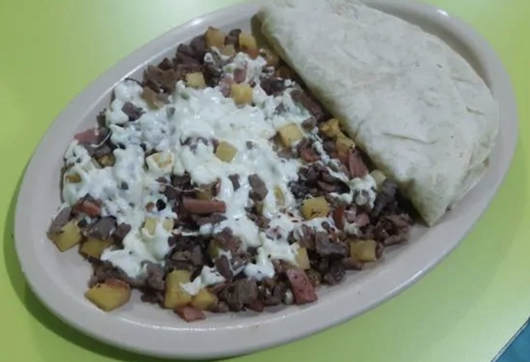 Papa con Bistec y Quesillo