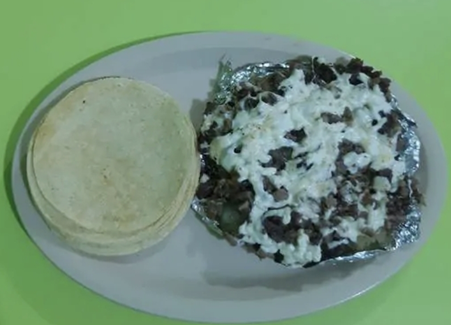lleva pimienta, mantequilla, carne de bistec, pastor, quesillo y tortillas de maiz