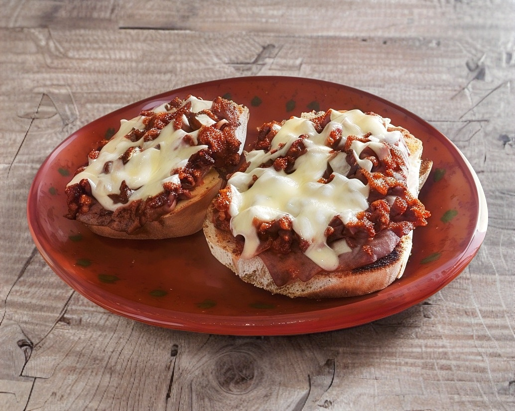Mollete con mayonesa, frijol, costilla gratinada con quesillo