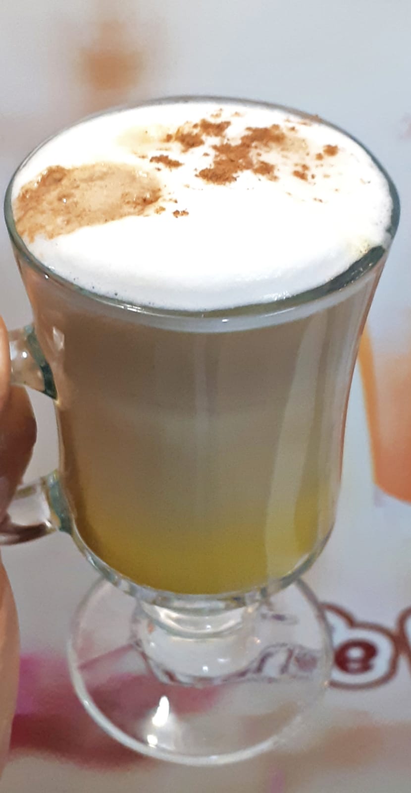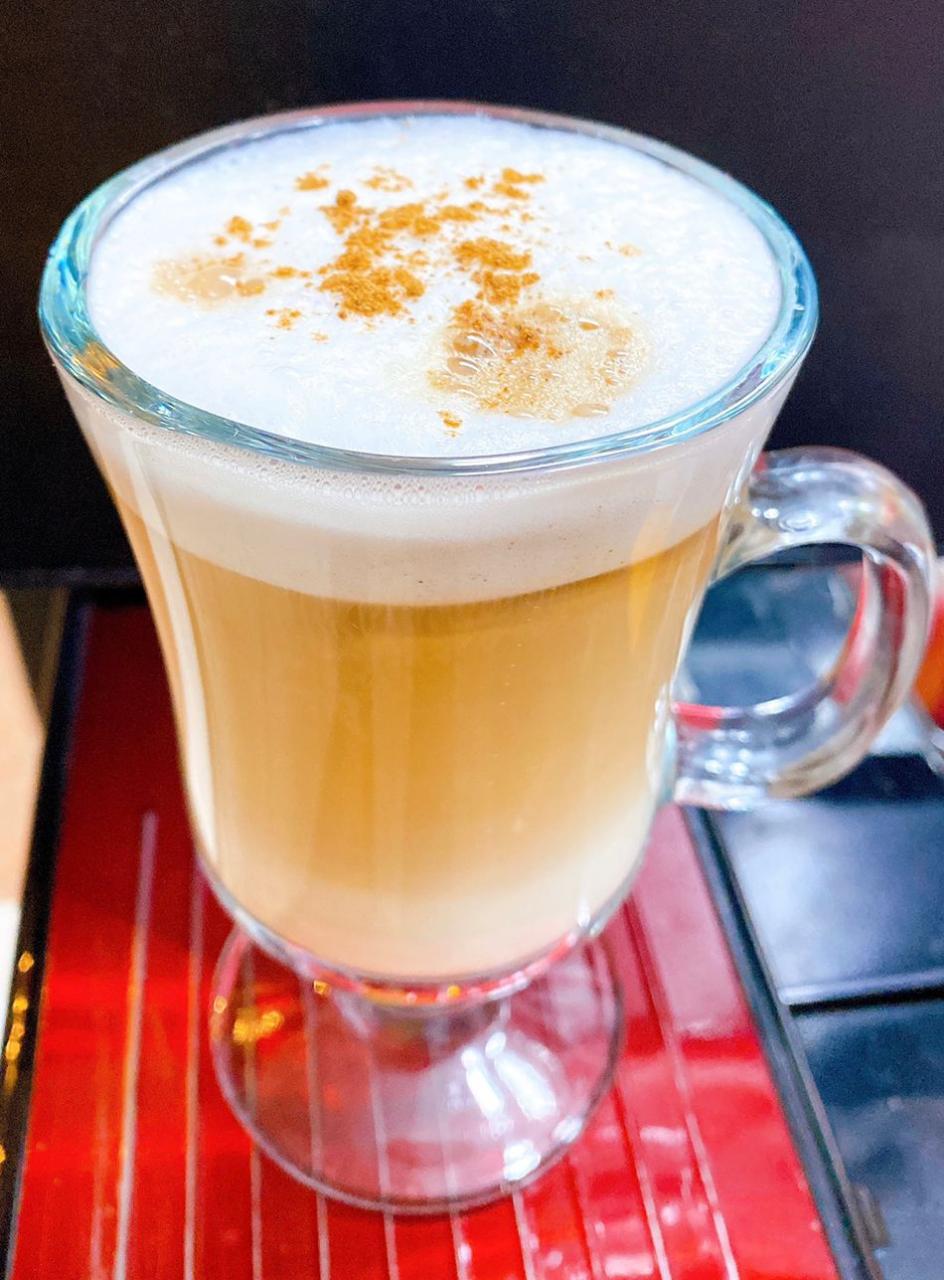 Café, leche espumosa y un toque de canela.