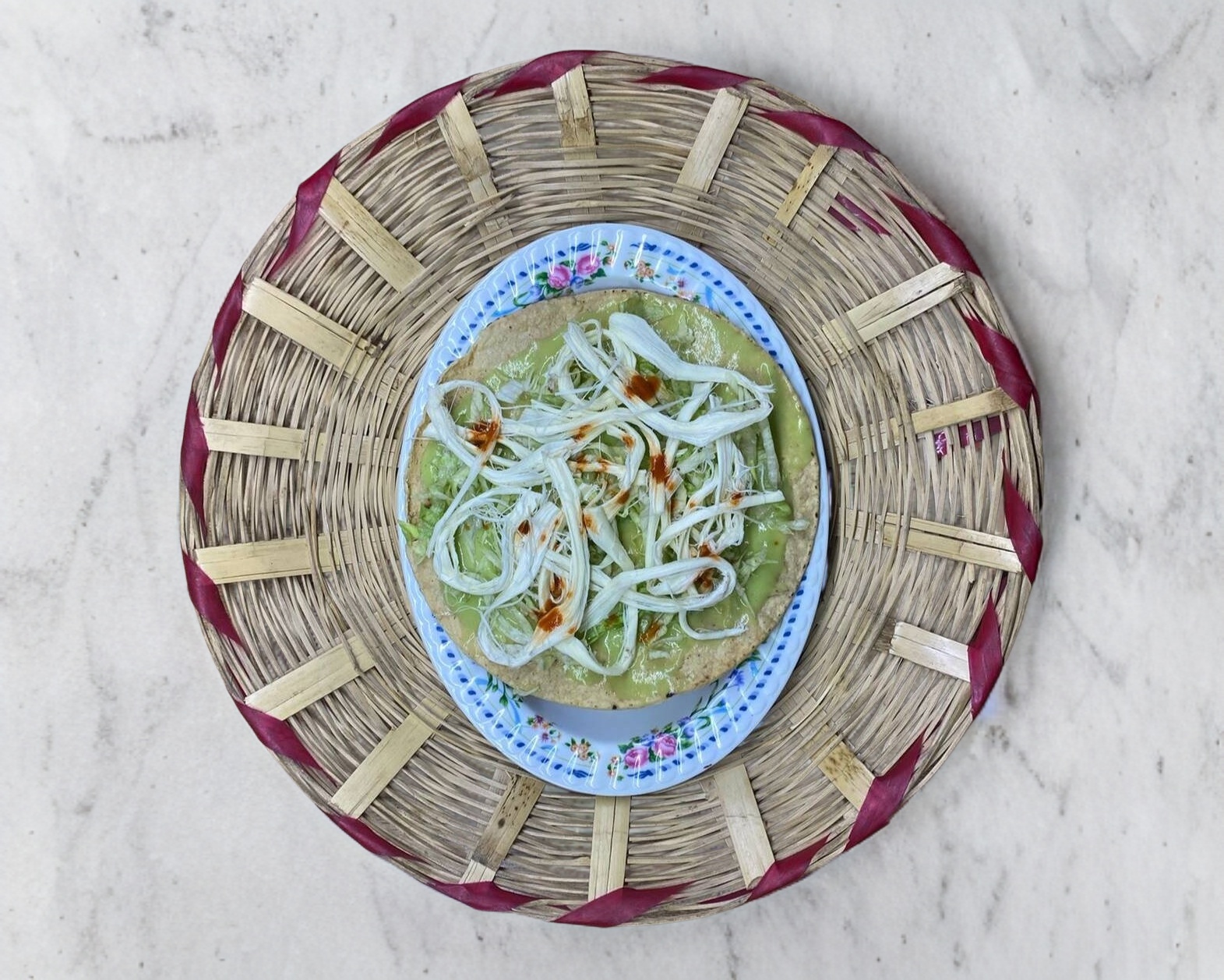 Tortilla (Tlayuda ) base aciento, Frijol, Verdura, Queso o Quesillo