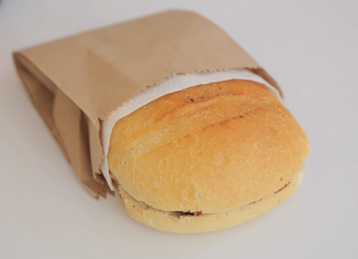Torta de salchicha oaxaqueña con quesillo gratinado, aderezadas con nuestra pasta de frijol, mayonesa y acompañada de aguacate, tomate y chiles en vinagre o salsa chipotle de la casa.