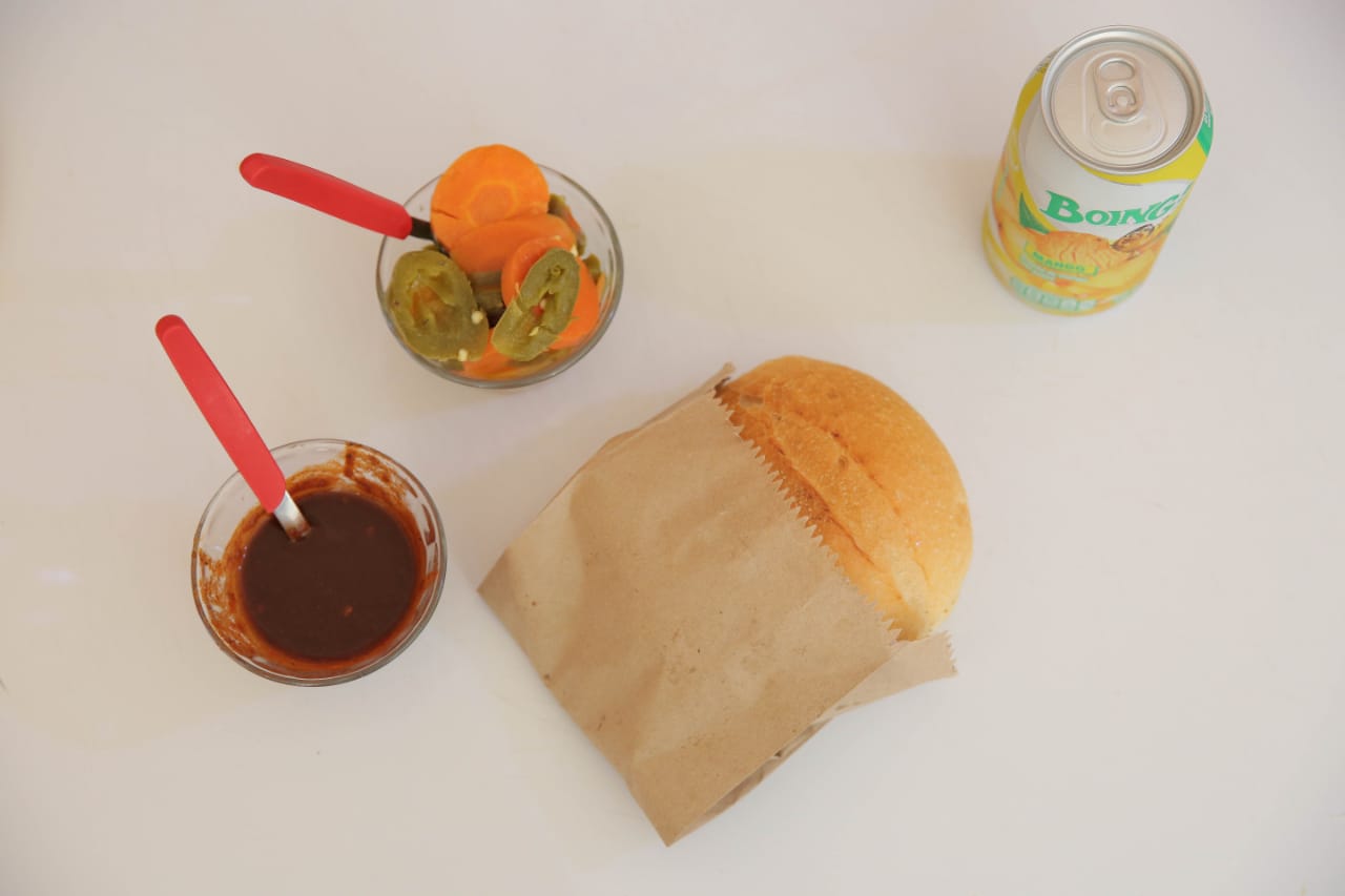 Torta de salchicha oaxaqueña con quesillo gratinado, aderezadas con nuestra pasta de frijol, mayonesa y acompañada de aguacate, tomate y chiles en vinagre o salsa chipotle de la casa.