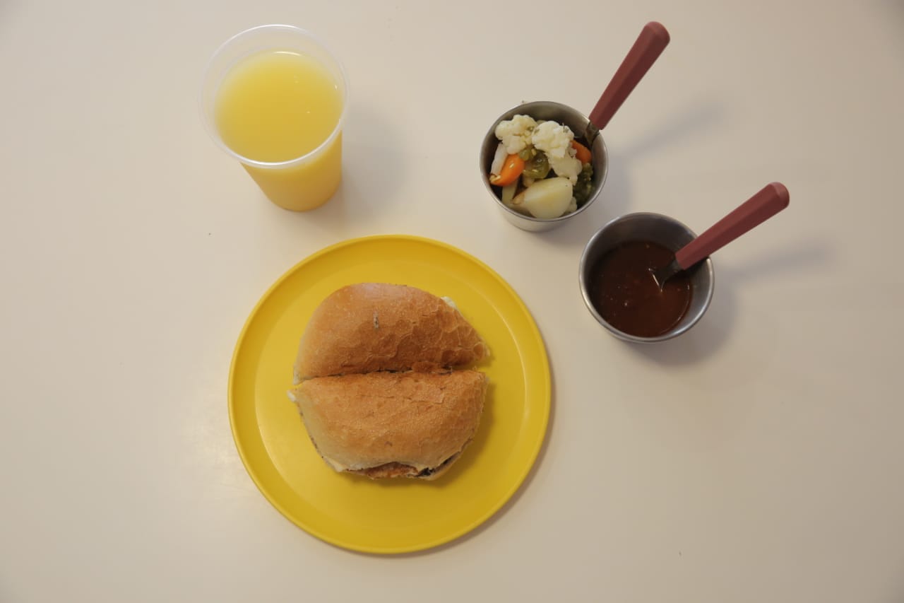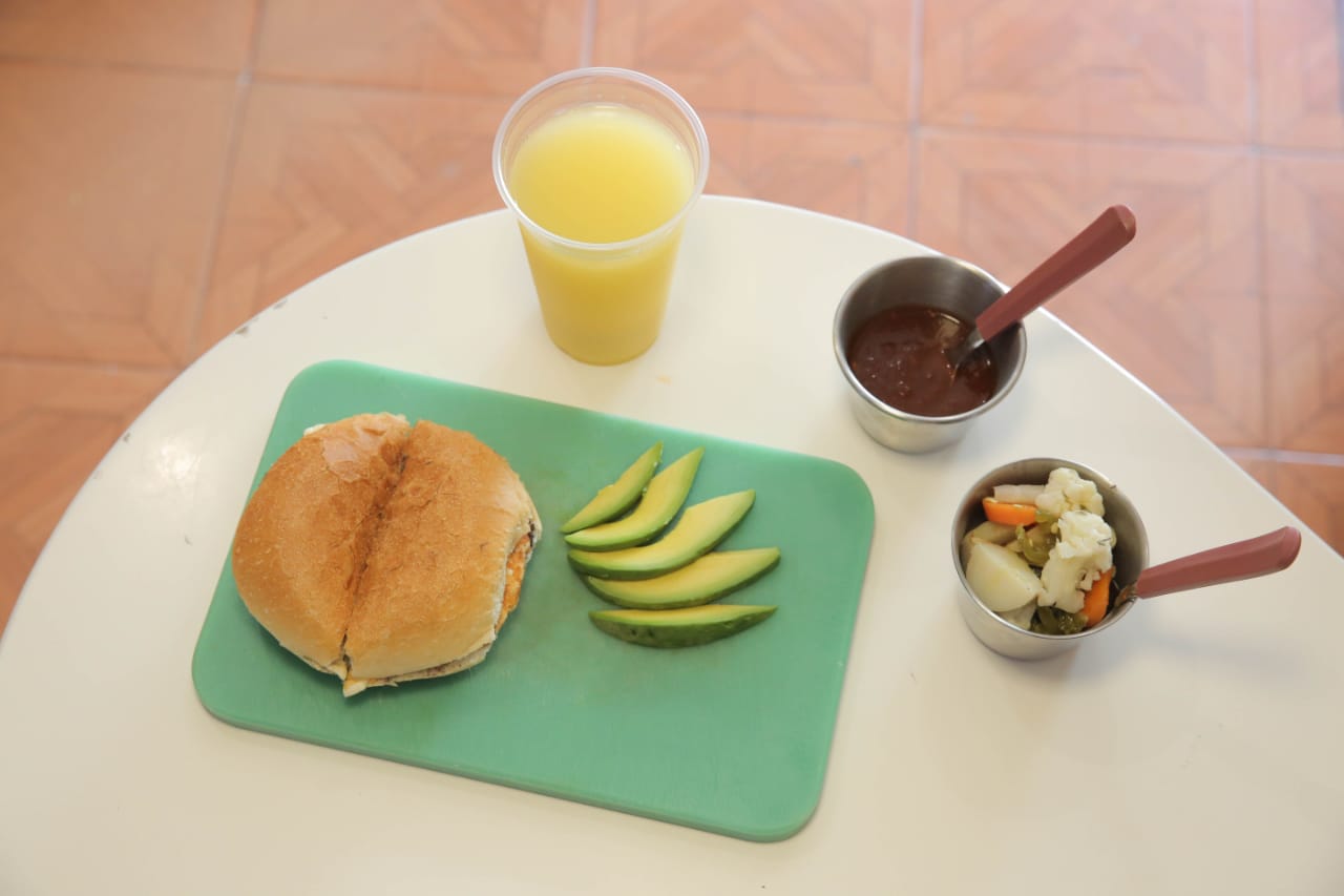 Torta de jamón de pavo con quesillo gratinado, aderezadas con nuestra pasta de frijol, mayonesa y acompañada de aguacate, tomate y chiles en vinagre o salsa chipotle de la casa.