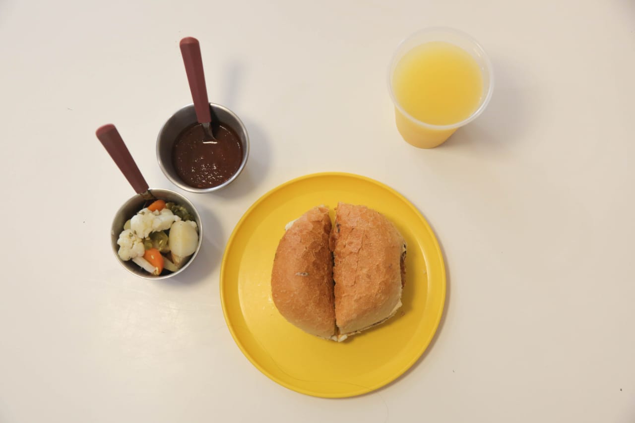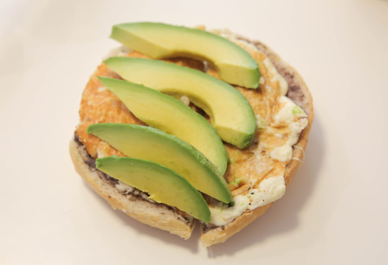 Torta de jamón de pavo con quesillo gratinado, aderezadas con nuestra pasta de frijol, mayonesa y acompañada de aguacate, tomate y chiles en vinagre o salsa chipotle de la casa.