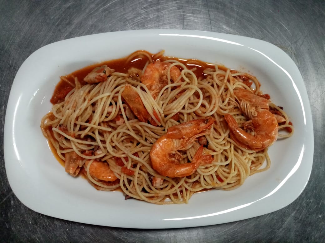 Pasta al dente, con mariscos salteados, camarón, pulpo y filete de pescado bañados en salsa italiana pomodoro.