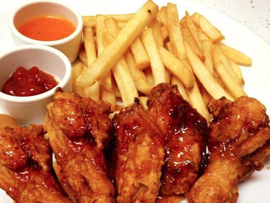 15 pzas de nuestras tradicionales alitas de pollo, 250 grs de papas a la francesa. Incluye aderezo Ranch y bastones de zanahoria. 3 salsas a elegir.