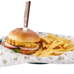 Pechuga de pollo empanizada, lechuga, tomate, pimientos, cebolla, queso amarillo, tocino y bañada con aderezo ranch y un toque de salsa original hot.