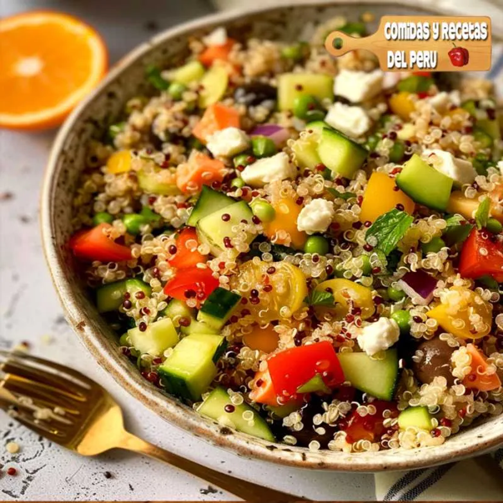 QUESO PANELA CON MIEL DE MAPPLE, QUINOA, PEPINO, TOMATE, PEREJIL.