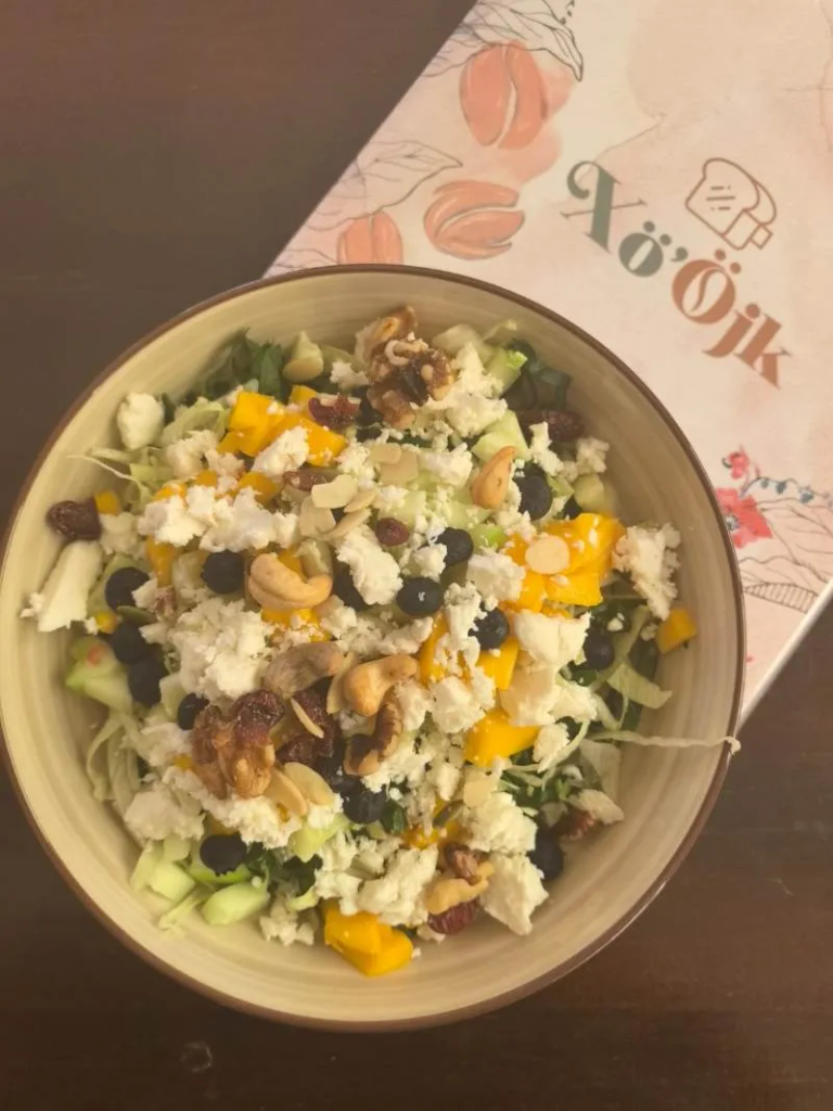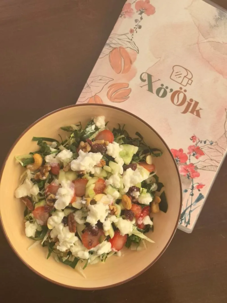 LECHUGA, PEPINO, CHILE CERRANO, MIX DE SEMILLAS, QUESO COTTAGE Y MIEL