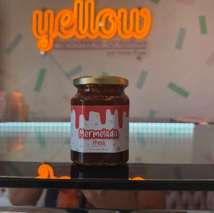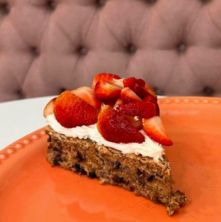 Individual, galleta de vainilla, relleno de crema inglesa de chocolate y toppings de fresa.