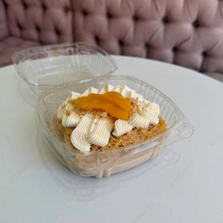 3 leches individual de vainilla, relleno de crema pastelera de vainilla y durazno, toppins de chantilly y durazno.