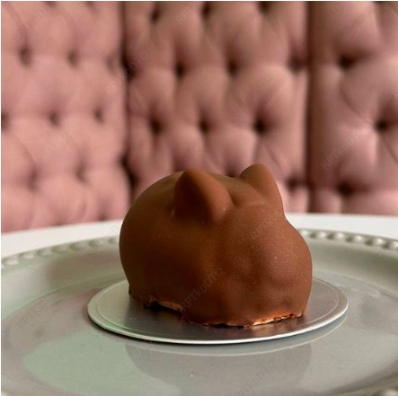 Cheesecake individual de chocolate de leche de conejito turin con cubierta de chocolate de leche.