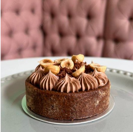 Individual, galleta de chocolate con cremoso de chocolate con avellanas, crema de mantequilla de chocolate, toppins de crumble de chocolate y avellanas.