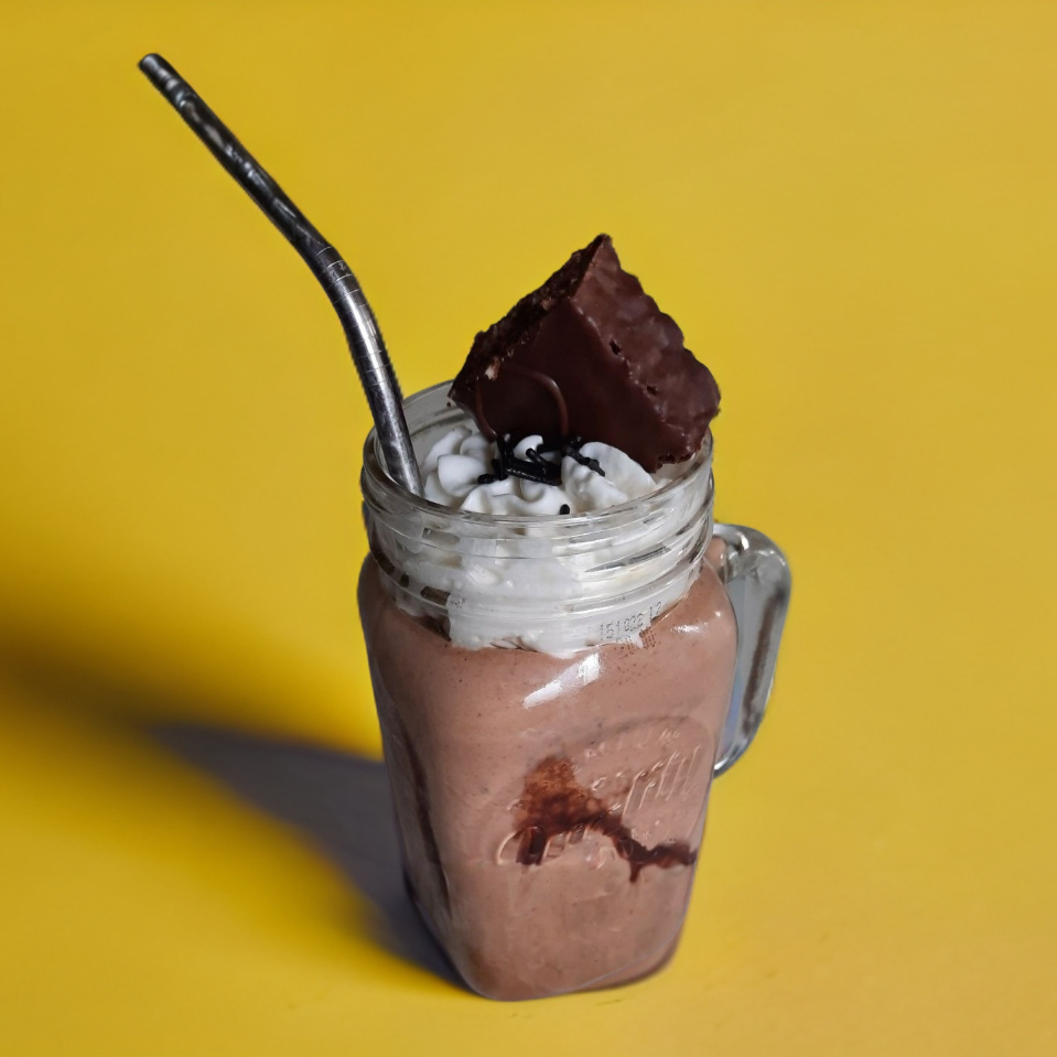 Kinder bueno, shot de café helado de vainilla y leche de su preferencia