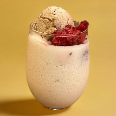 Elaborado con yogurt griego, leche de su preferencia, hielo triturado y frutos rojos.
