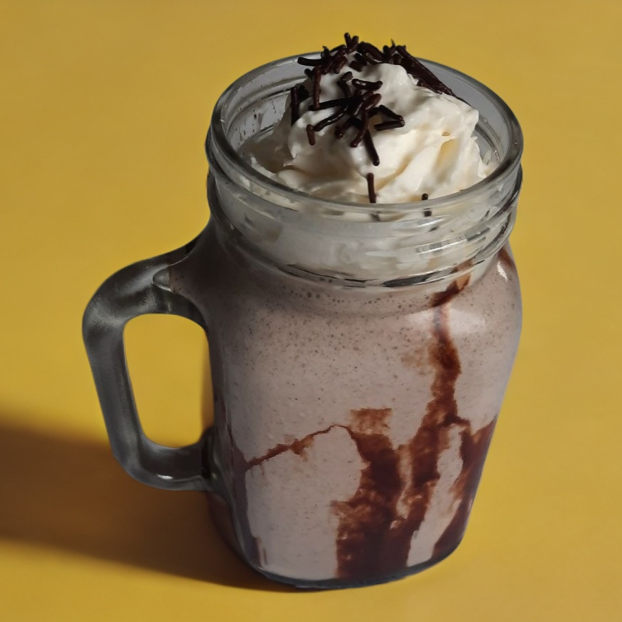 Vaso decorado con chocolate, elaborado con leche de su preferencia.
