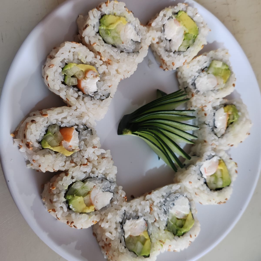 Xf masago, x tampico, xd aguacate, salmón, queso y cangrejo.