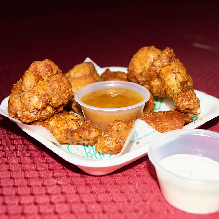 Alitas fritas acompañadas de salsa Búfalo, 6 pzs.
