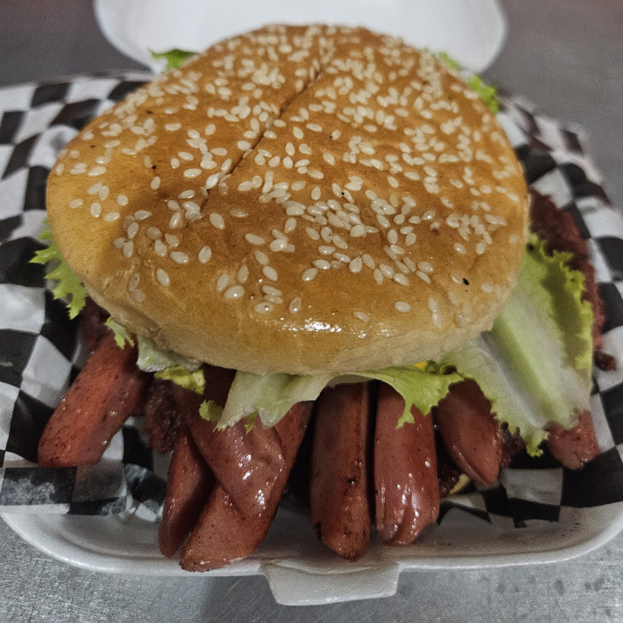 Preparada con lechuga italiana, carne mixta, tocino, jalapeño, cebolla, catsup, mayonesa y mostaza